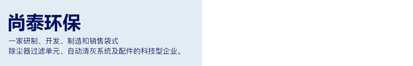 上海尚泰環保配件有限公司創立于2006年5月,是一家研制、開發、制造和銷售袋式除塵器過濾單元、自動清灰系統及配件的科技型企業。